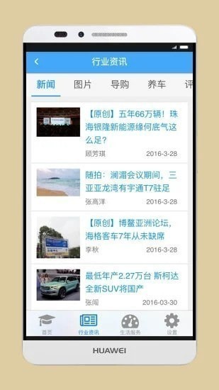 在行业资讯栏目还可以查看到新闻内容、养车知识等等内容
