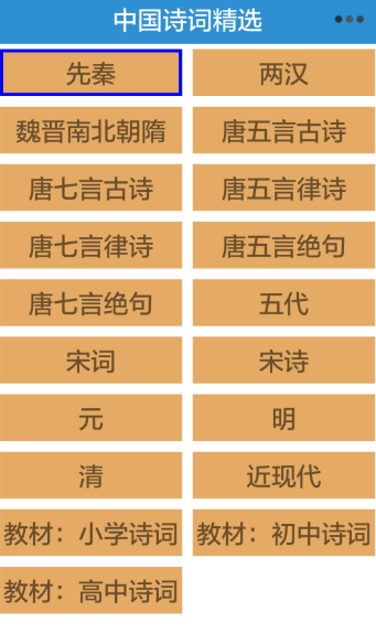 古诗、文言文、现代诗以及作者都已经进行了详细的分类