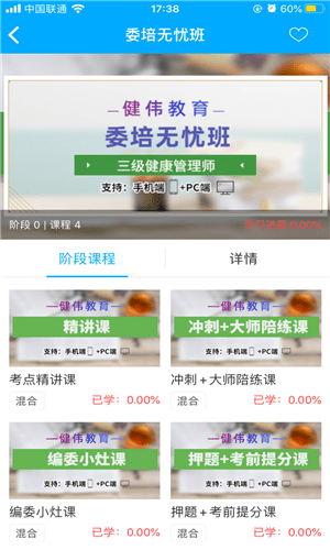 职考课堂秉承“知识就是力量,学习就是财富”的办学理念,为广大用户提供健康管理师考试、一级注册消防工程师考试、基金从业资格考试等类目的学习服务。用更丰富的课程内容,更便捷的师生互动体验,更灵活的学习方式和更加科学的督学机制,让广大用户通过学习,成就更棒的自己。