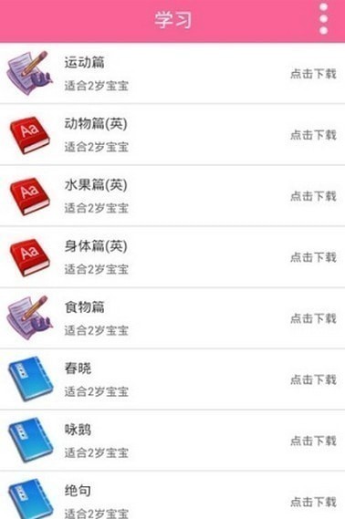1.根据宝宝的年龄,自动推荐宝宝该年龄段最合适的学习资源。
