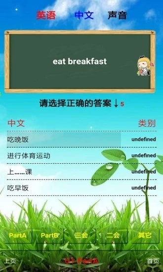 可以根据英文、中文、声音选择答案等。