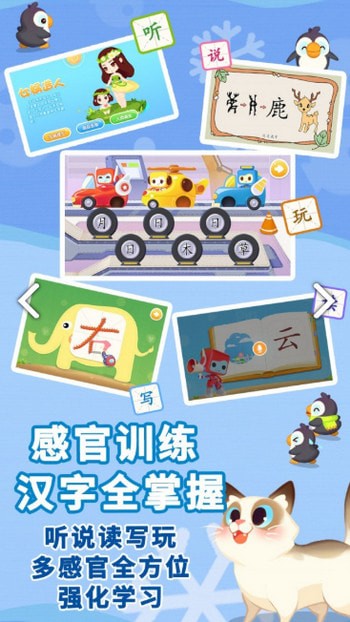 通过“听、说、读、写、玩”的识字环节,调动孩子的听觉、视觉、触觉等多种感官进行学习,全方位强化汉字记忆。