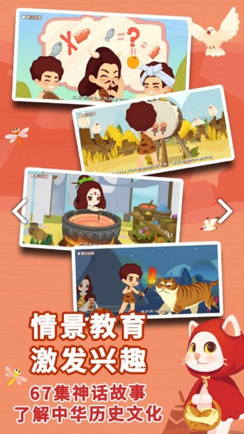 通过神话故事引出汉字,感受中国文化,激发孩子的识字兴趣。让孩子在故事的引导下,自发地学习。