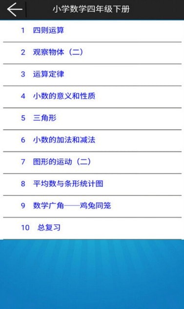 四年级数学下册人教版是一款学习教育的软件,针对的是小学四年级的数学,软件与小学四年级人教版的教材一样,方便家长对孩子进行课外辅导,还有孩子的自学,感兴趣的话就快来下载吧。