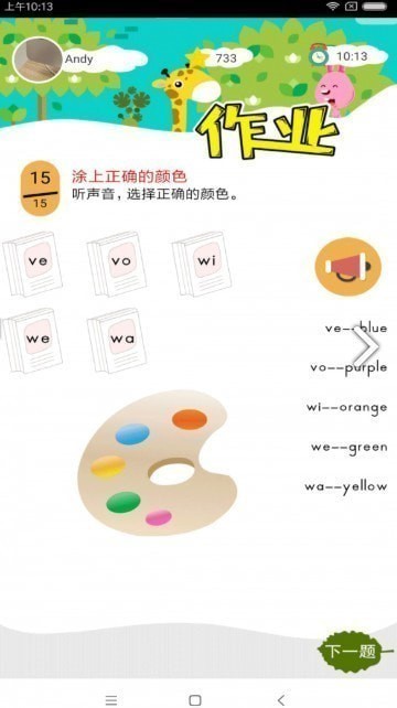 每次完成老师布置的任务后,实时反馈练习结果,并给予相应的鼓励积分。针对儿童喜欢游戏的天性,设计多款适龄游戏,孩子可使用鼓励积分解锁游戏,获得别样的学习成就感。