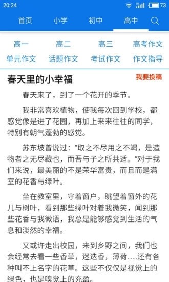 1、可以在APP中阅读APP提供的各种优秀作文素材;