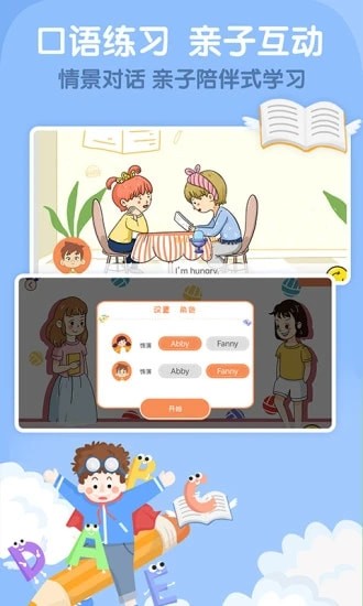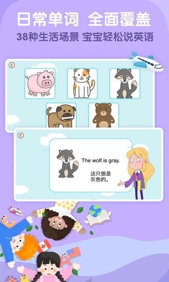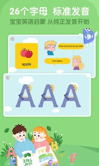 字母入门,词汇拓展,单词短句,视听素材,绘本读物,睡前故事,亲子情景对话一应俱全,多方位提升孩子听说能力。
