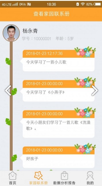 通过数据分析报告,实时分析宝宝幼儿园学习情况,学习及动态的数据都详细分析;