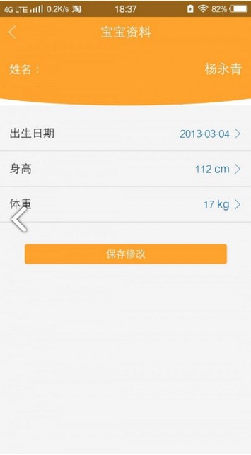进入我的,添加、修改宝宝的资料、