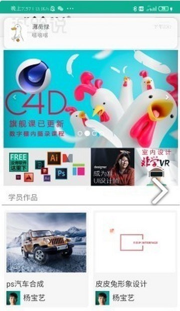 用户可以在应用内浏览最近的课程与学生作品;