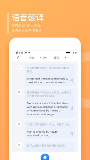 语音翻译——精准的语音识别及翻译引擎,帮你出国旅游旅行时与外国人轻松交流,灵敏迅速,翻译精准,堪比同声传译;