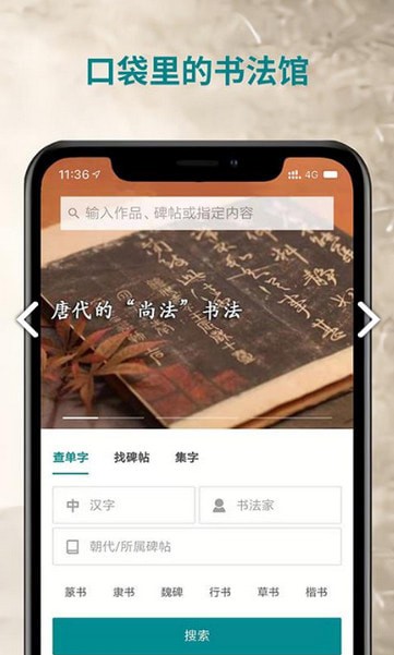 萃馆app是一款书法学习软件,萃馆app内有海量高清碑帖资料,书法爱好者可快速搜索学习,同时还能在萃馆app查看每一个汉字的写法和出处。