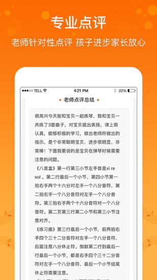 3.每节课后老师填写陪练报告,孩子练琴过程中的优缺点一目了然;