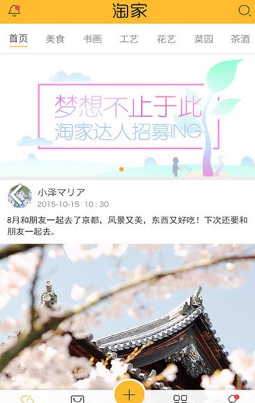 -淘家是一个没有门槛的分享平台,你可以轻松发布动态,如制作过程、推出的新品、最新活动等,分享创作的过程、分享成果、分享心情。
