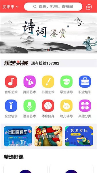 我乐艺是一款专为艺术培训准备的手机应用软件,软件上有美术、声乐、舞蹈等多种艺术学习的课程,还可以为用户推荐距家附近的优质艺术培训机构,让艺术生们能找到自己满意、合适的学习课程,感兴趣的朋友千万别错过!