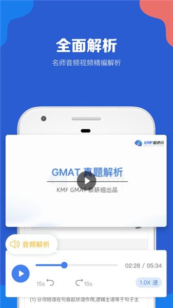 【全新GMAT一站式备考】考满分GMAT,帮助10万+GMAT中国考生完成网上备考的提分神器。我们涵盖了初期备考方法学习,背单词,中期刷题,听直播课及活动小组,以及后期真题模考。「GMAT考满分」一款面向留学生研发的GMAT备考应用,涵盖GMAT SC语法、GMAT CR逻辑、GMAT RC阅读、GMAT PS数学DS数学,GMAT单词等考试学习内容。GMAT考满分题库为广大考生收录8000余道备考真题,GMATPREP模考题集、GWD真题,GMATManhattan、Magoosh,GMAT单词、GMAT题型解析等众多GMAT模考干货,其中独家“精学精练”功能助你轻松碾压GMAT考试,获得较高的成本排名,提升留学申请竞争力。