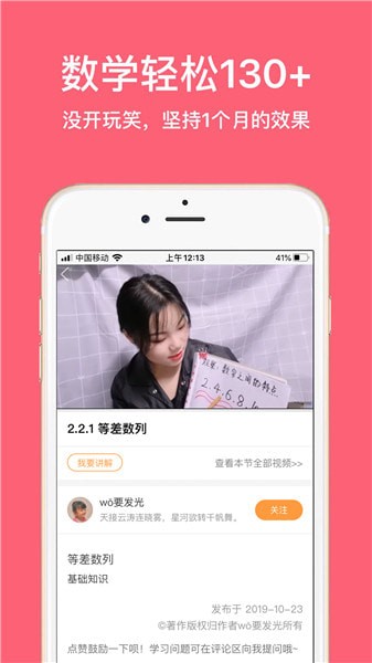 2、获得关注——你的讲解作品,将很快被其他用户看到,其他用户可以学习、点评、赞你的高中数学讲解作品,可以关注你,成为的粉丝哦。