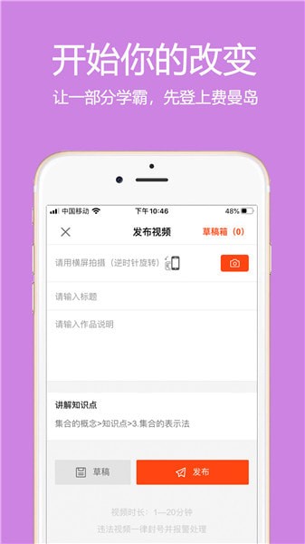 发布视频:直接通过费曼岛app录制视频,感受不一样的视频教学方式。