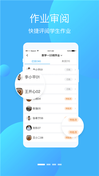 1、软件内为用户提供作业审阅的功能,让老师可以快速的评阅学生的作业;