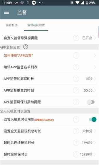 除此之外,还可以限制全天监督玩机总时长,超时以后可以设置更严格的监督
