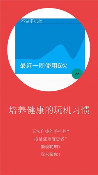 不做手机控app是专为手机时间管理打造的应用,能随时查看自己手机内各个应用使用时间的详情,能对自己的应用进行定时管理,使用到达一定时间就被锁死,是您管理自己手机使用时间的好帮手。