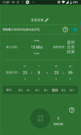 创建监督任务:监督任务分为两种,一种监督连续玩机时间,一种监督累计玩机时间。