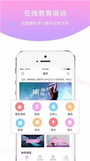 新教授是一款很专业的手机在线学习软件,软件上有瑜伽学习、音乐学习、绘画学习、中小学生在线视频学习等,用户可以在这里培养兴趣爱好,接受软件上的专业学习,不断提升自己的能力,感兴趣的用户快来本站下载吧!