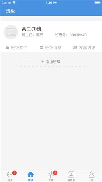 班级文件、班级消息、发起讨论、添加班级