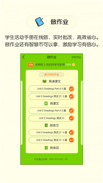 配套学生活动手册在线做,实时批改,高效省心。