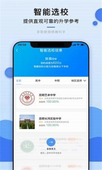 选校升app是一个集地图找学校、智能选校、教育机构查询、出国留学、教育资讯等五大主体功能于一体的教育信息服务平台,目前已在云南省范围内开通。