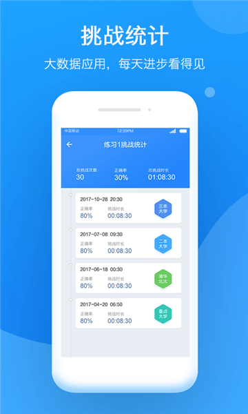 每天的进步都可以直观的查看到,智能记录了挑战统计数据;
