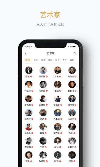 系统推荐知名艺术家,可以向艺术家提问咨询;