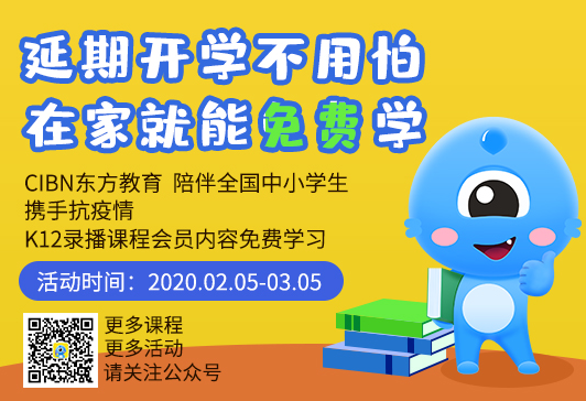 CIBN东方教育截止到3月5日,新注册登录用户即可0元领取K12月包会员课程,在家也能免费学。