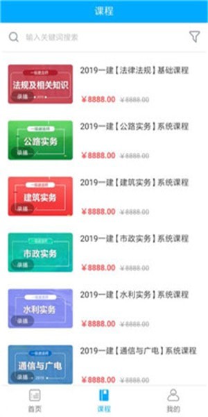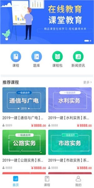 进入文道网课app首页选择考试的类型,随即得到推荐的课程