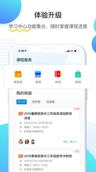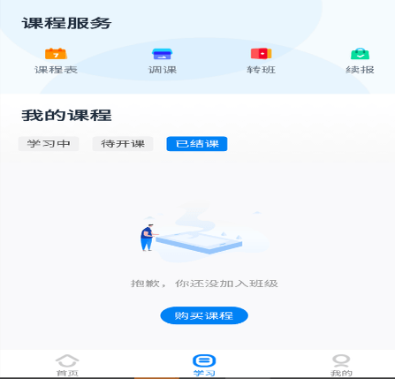 “学习中心”里面还有调课、转班、续报等功能,这就要看学生的情况和授课之后的效果来决定了。