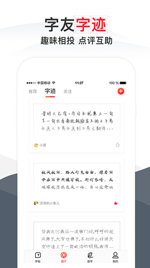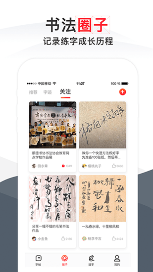 这里拥有许多用户发布的字帖作品,您可以在这里欣赏他人的作品;