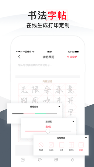 可以预览APP提供的字帖,您就能根据自己的练字需求,生成专属的字帖了;