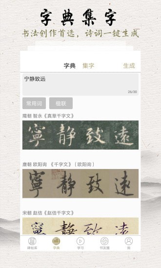 4.字典集字:书法创作利器,诗词一键生成。