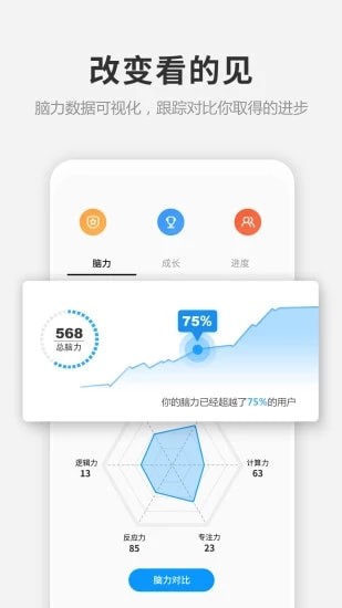 成长查看,经过训练,不断更新脑力记录了解成长情况;
