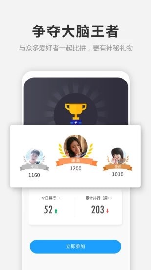 脑力排行,通过上传脑力检测结果,查看自己和其他用户的排行情况;