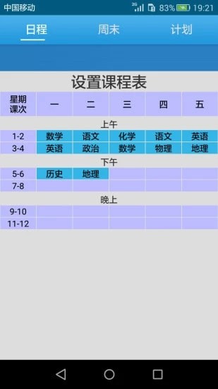 课表功能,自定义课程表,单双周设置、闹钟提醒、制定学习计划。