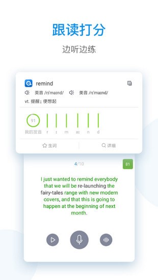 - 跟读打分:跟读后可查看单词发音准确度,纠正发音问题。