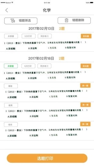 结束录题后,进入对应科目的错题列表,可打印错题。打印错题有3种形式