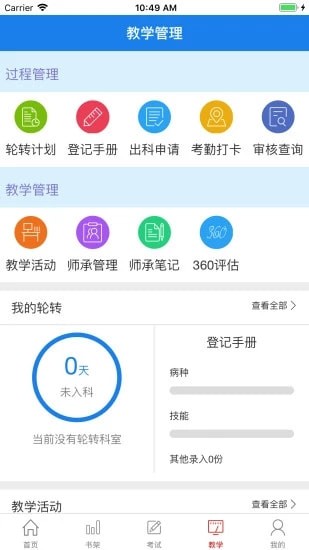 6、轮转计划、登记手册、出科申请、教学活动、临床教学一体化信息系统;