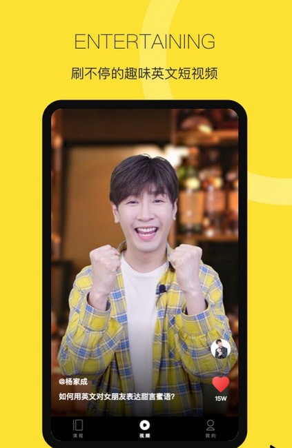 在产品主菜单栏,设有专门的视频入口,视频入口内短视频以与抖音相同的信息流模式呈现,内容均为英语口语学习相关内容。