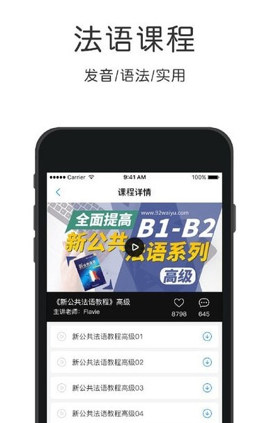 除了标准法语、法语能力考试、新公共法语等丰富的法语课程外,本应用提供的超过3000句生活和工作各场景的法语口语,能迅速提供学员的法语听说等表达能力。