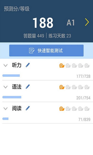 • 强化弱点:若用户做错一道语法题,蜗牛法语题库会记录此语言点是用户弱点,为强化用户对于此语言点的理解,APP可智能推送同类语法点题目以练习强化。