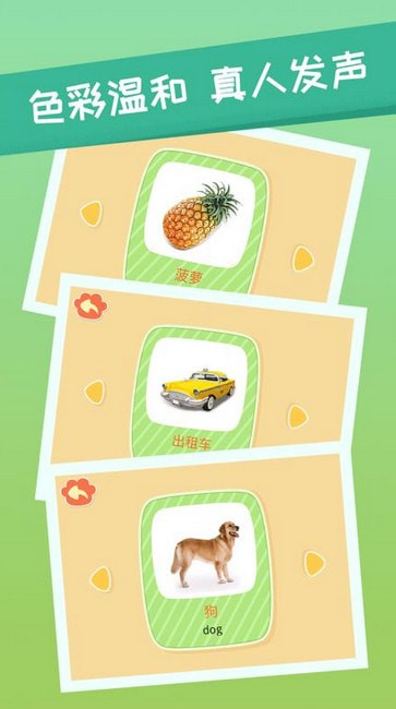 应用有收录了大量汉字及英文单词,都以卡通的形式表现出来;