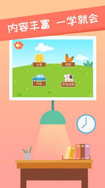 趣味识字,以卡通化的生活场景为背景,让宝宝进入沉浸式的学习;