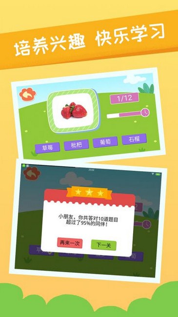 知识关卡功能,增强宝宝的竞争意识,培养学习兴趣;